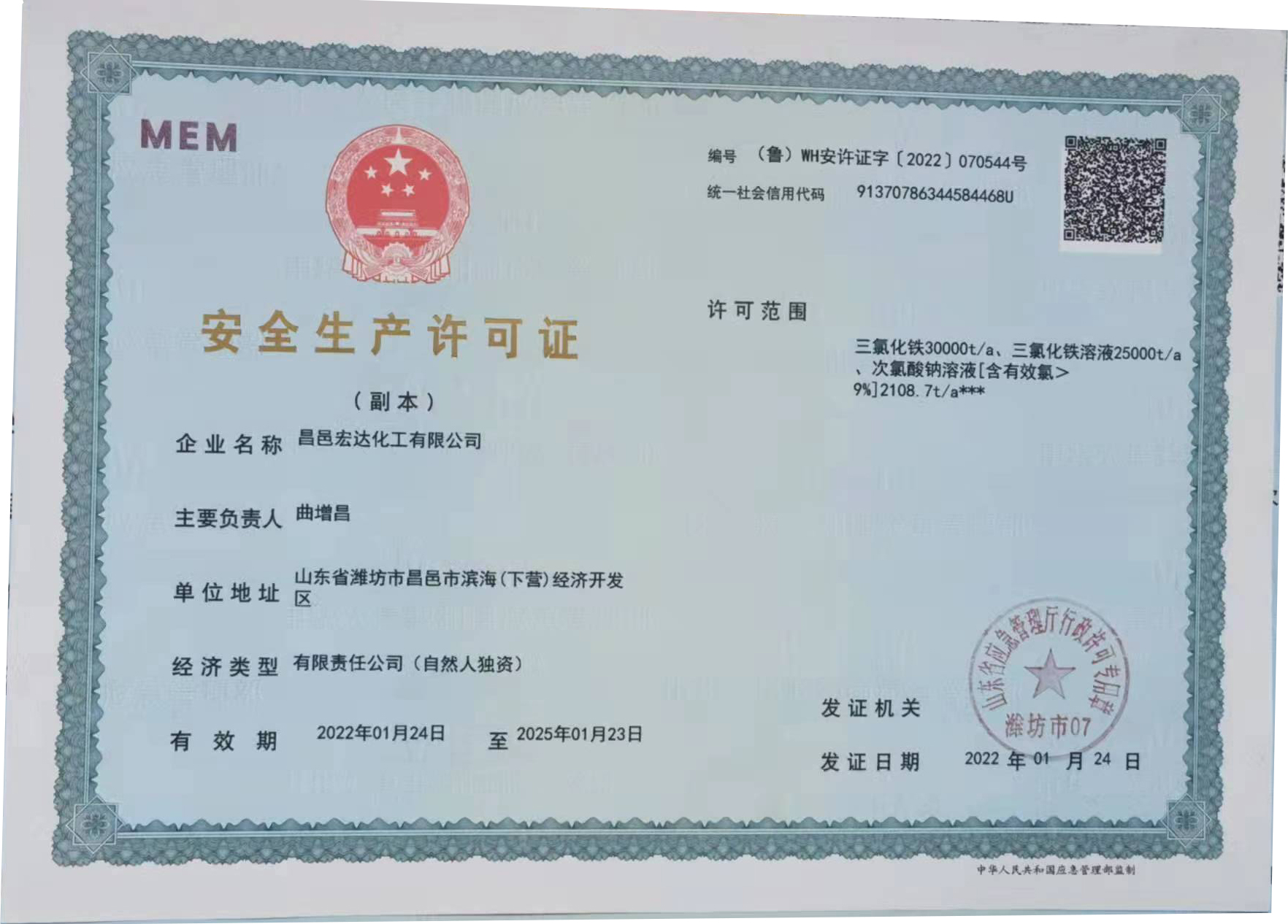 昌邑宏達化工有限公司位于美麗的昌邑濱海(下營)經濟開發區,公司成立于2015年6月,公司6萬噸/年無水三氯化鐵,20萬噸/年液體三氯化鐵,6200噸/年高純次氯酸鈉,3萬噸/年石墨碳粉,20萬噸/年氯化石蠟,30萬噸/年聚合氯化鋁,32萬噸/年鹽酸項目,總投資6.5億元。是一家集研發、生產、銷售、運輸為一體的高端精細化科技型企業,為行業技術的領軍企業。 我公司從德國引進全自動化的生產設備,實現無水三氯化鐵自動化生產和連續性生產,產品穩定純度高,更好為客戶提供優質產品。產品無水三氯化鐵均為粉末狀,高端產品含量已達到99%以上,遇...